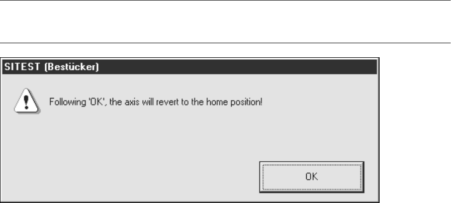 2 Functions for the Adjustment of the Machine User Manual Test Program SITEST 2.1 Axis Functions Software Version 405.xx Issue 01/99 2 - 12 NO TE If the pos itioning operation for the z-axi s has been s tar ted, the foll…
