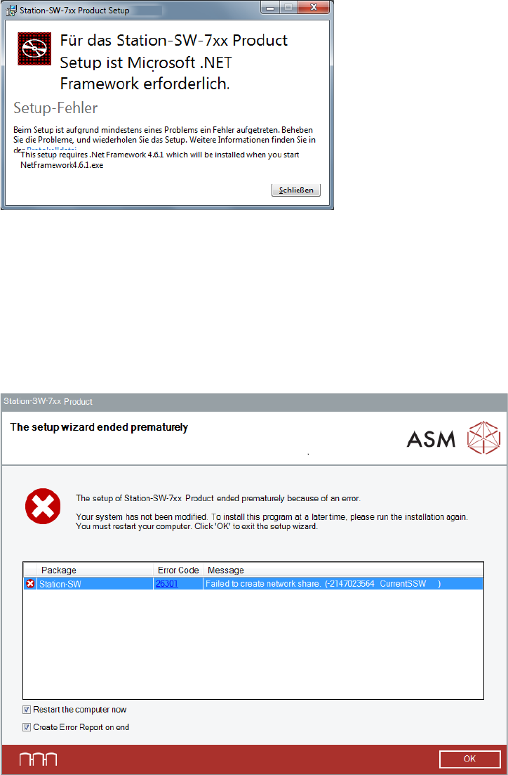 Station Software V ersion 711.1 (R 18 - 1) / Installat ion Manual 05/2018 Edition 35 5.4.1 Error Handling T he following erro r message may be di splayed after starting the station softwar e installation. Figure 5-23: Fa…
