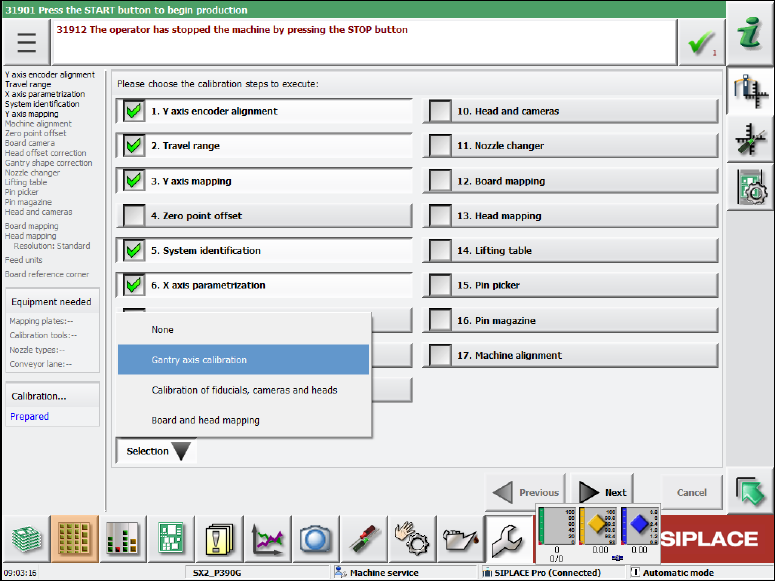 Select Selection Gantry axes calibration.