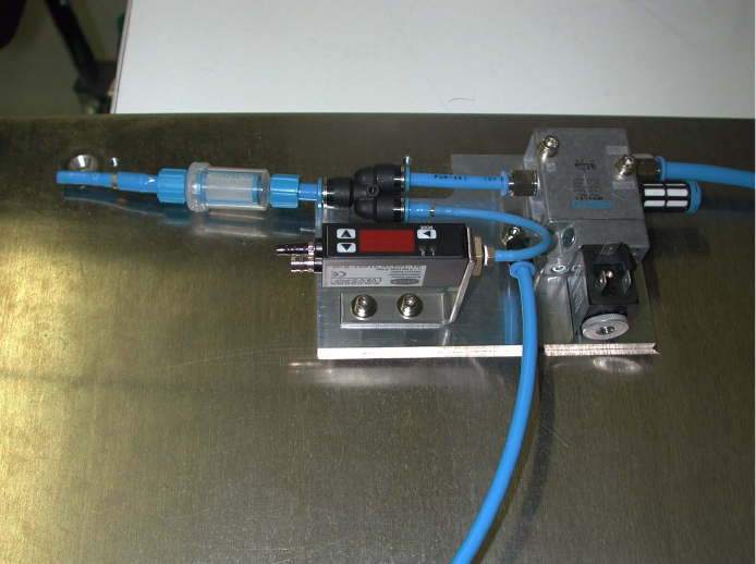 abgeschaltet und durch Betätigen des Nadelventils an der Drucklufteinheit entlüftet worden sein