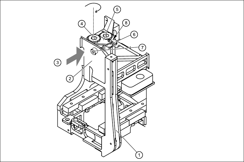 Æ Remove the toothed belt from the synchronizing disk of the X-axis motor unit (item 5 in Fig.