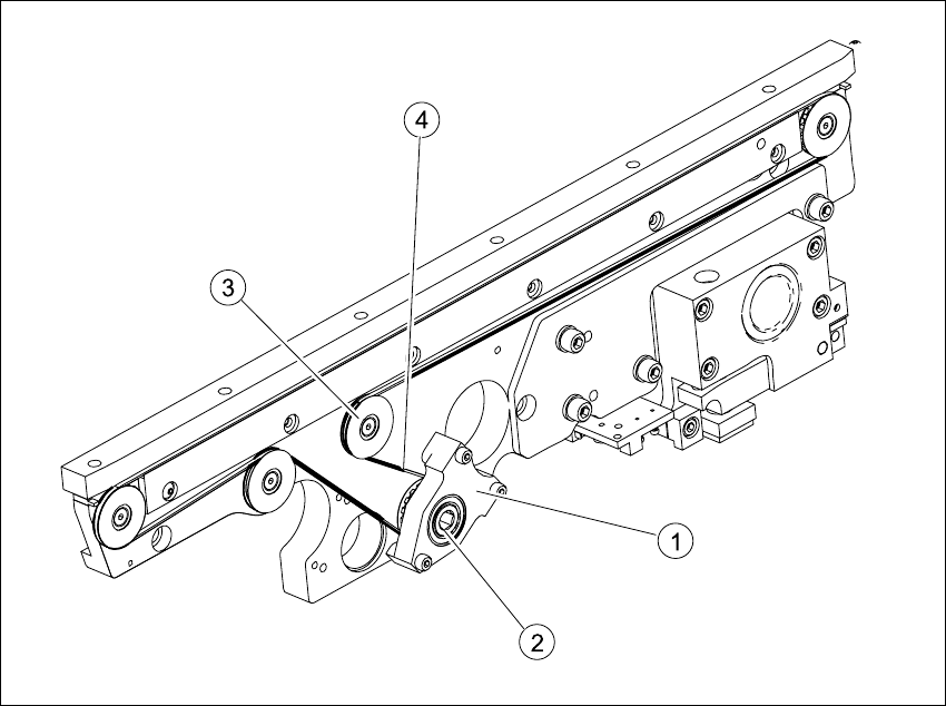(1) Motor mount (3) Deflection pulley with slot (not visible)