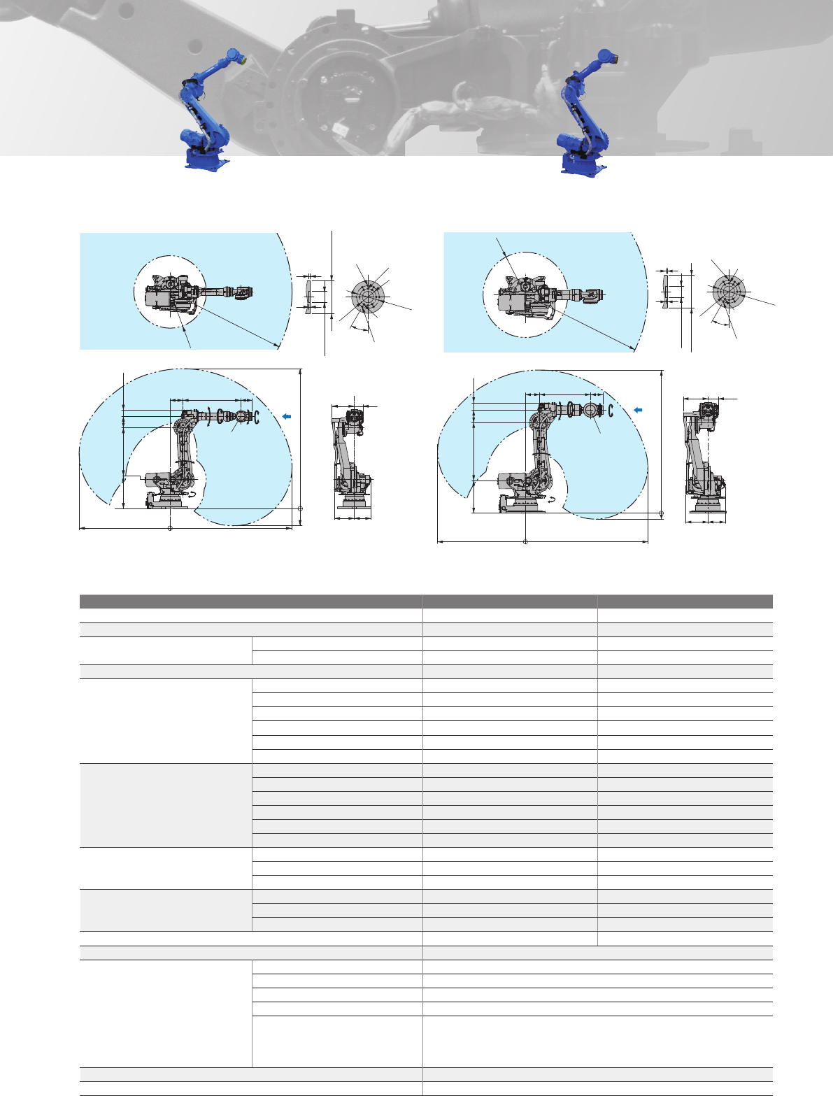 记载的是自轴的动作范围而不是对地基准。(水平多关节机型除外)