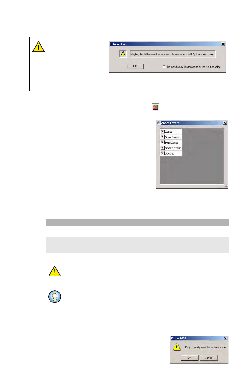 .TST file creation 4 - 28 Vision 2007 4.10 User Manual Re v 01 The Joker zones have been defined in order to ge t additional lightings for some compo- nents or type of components which gener ate problems with the inspect…