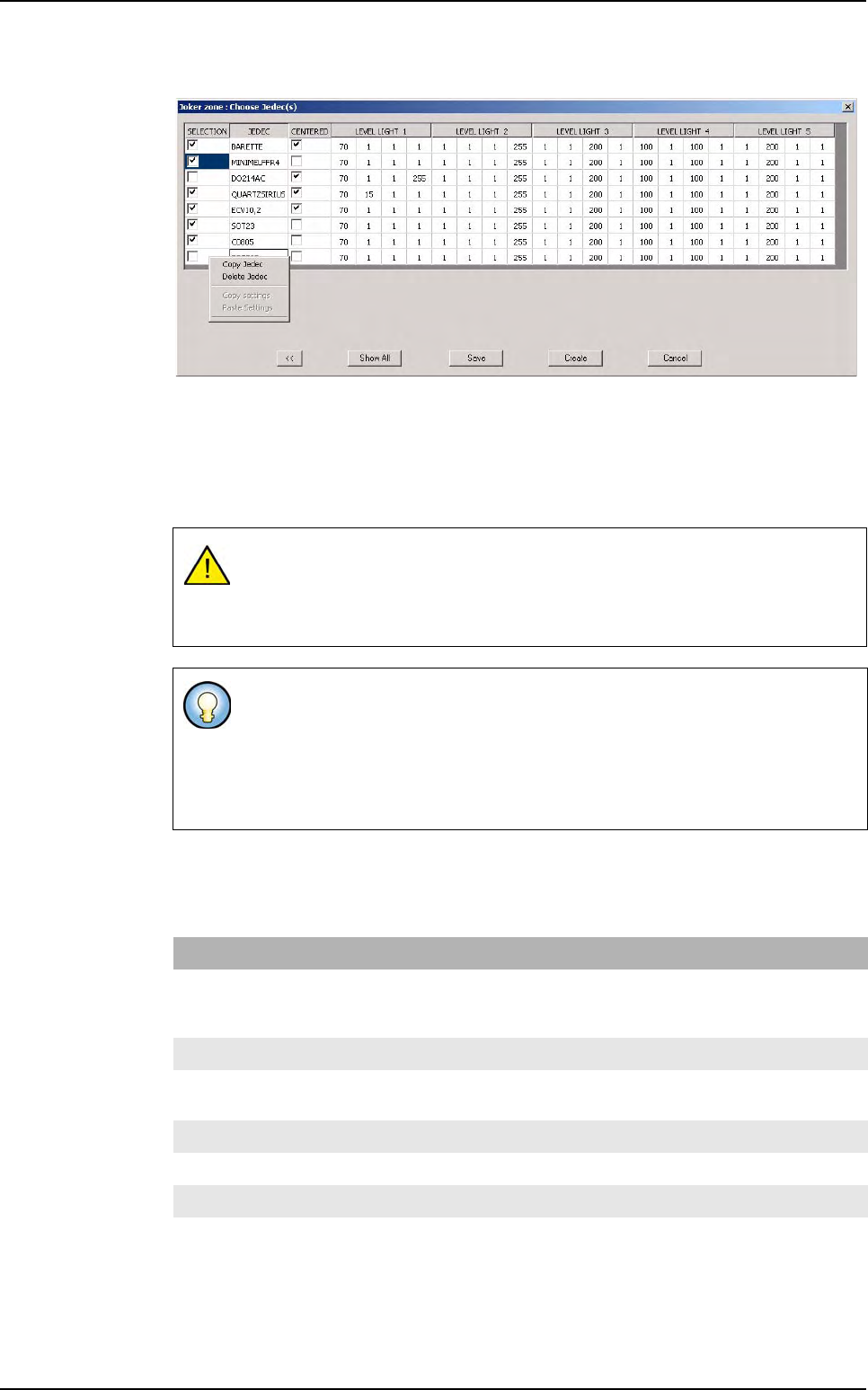 Case 3.1: Click on Yes. The Zone edition window is displayed with the light settings of