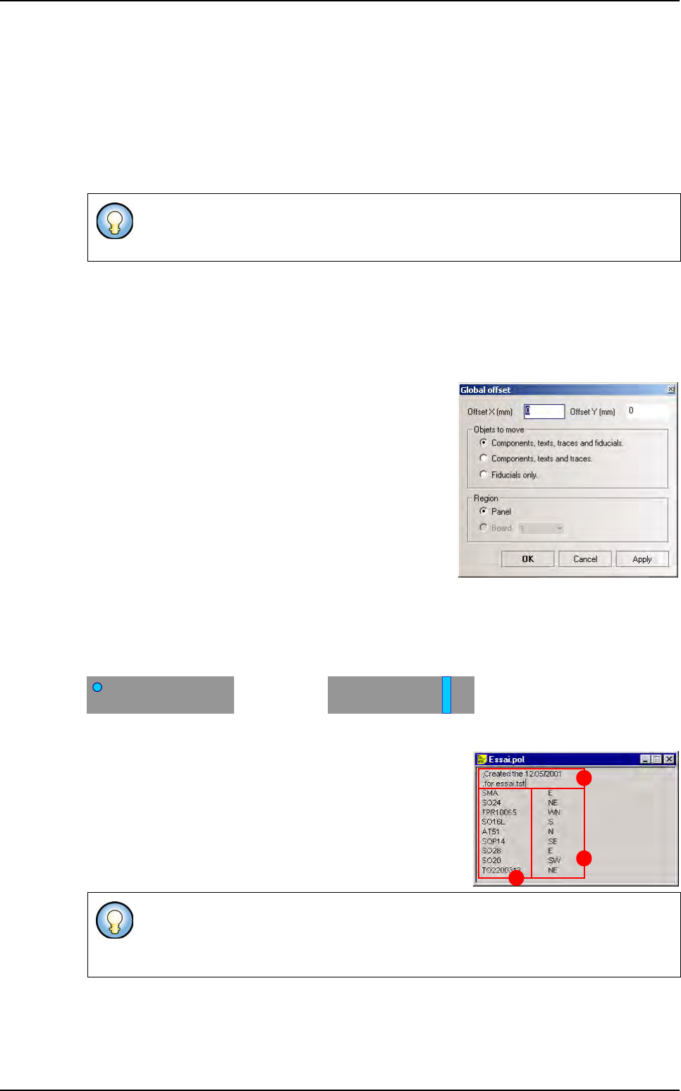 This functionality allows applying a defined offset value on fiducials only, on components, text