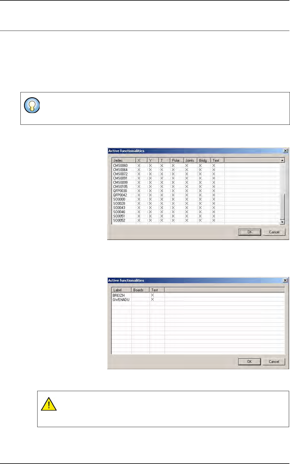 select some tests for components or some labels for text inspection (OCV). The configuration is saved