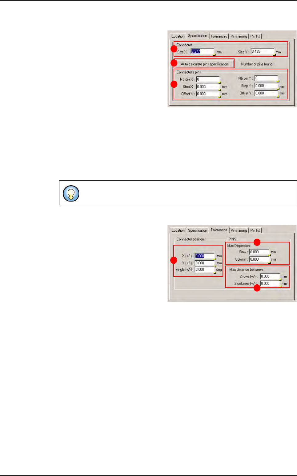 Offset X & Y: offset apply to the pin matrix from connector center position in X, Y direc-