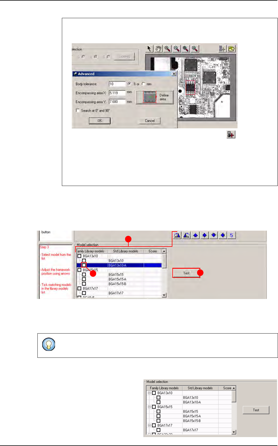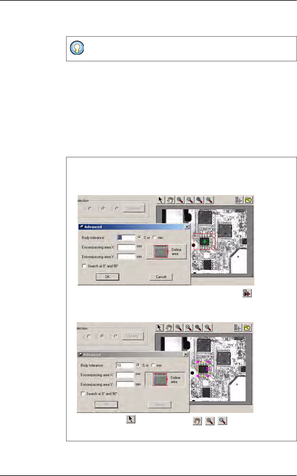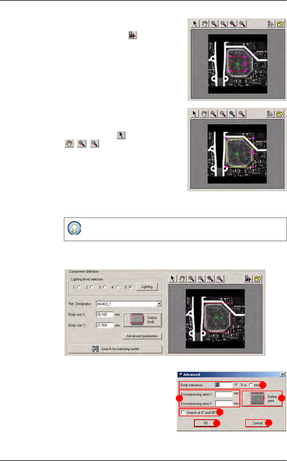 Match Maker Vision 2007 4.10 User Manua l Rev 01 6 - 17 In Encompassing area X/Y (B) define the length and the width of the component with the leads. Click on Define area button (C) to define the co mponent body with the…