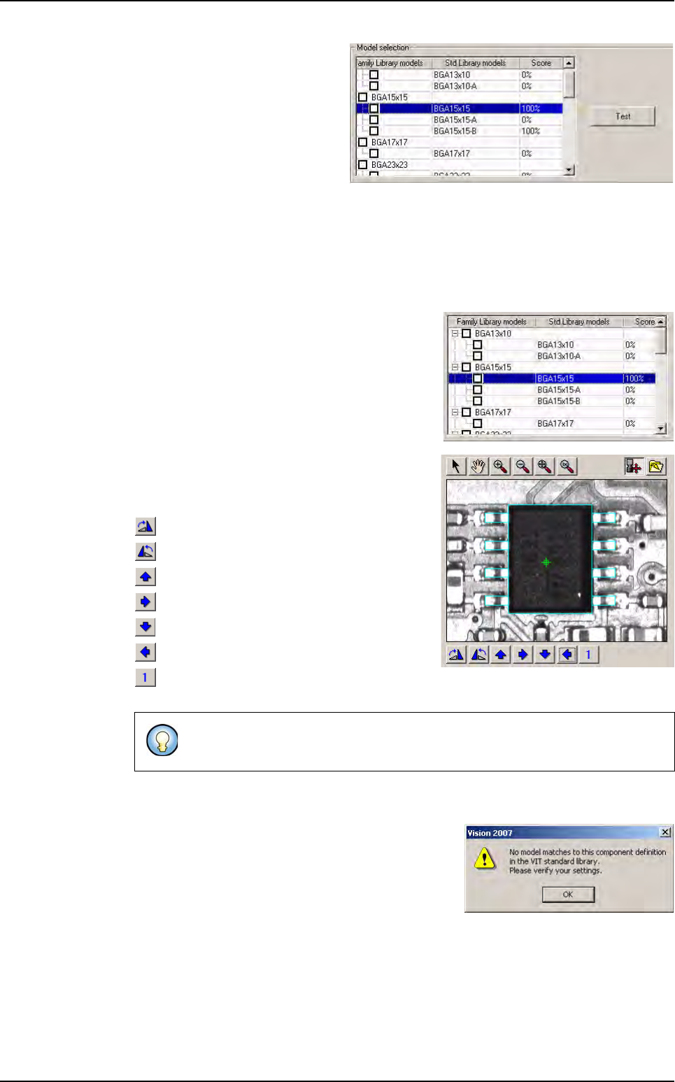 Match Maker 6 - 18 Vision 2007 4.10 User Manu al Rev 01 6.4.4 S tep 3: Model selectio n This third step enables to ch oose a model which matches to the «unknown» component. Sev- eral steps are ne cessary: A Test B Presel…