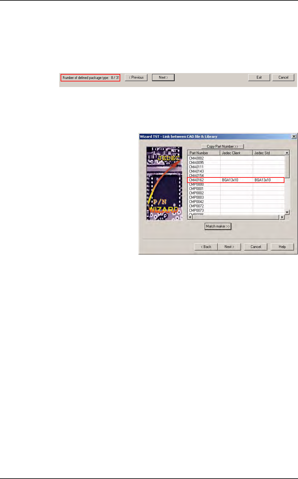 Next >: The Match Maker page of the next Part Number from the list appears.