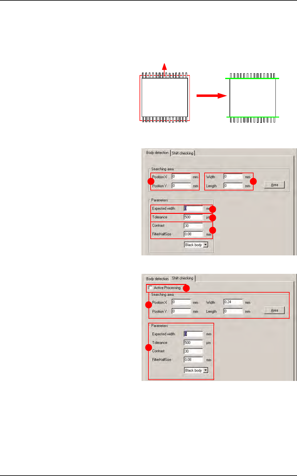 Tools library 7 - 32 Vision 2007 4.10 User Manual Re v 01 7.7.5.2 Component’s leads detectio n Component’s leads detectio n po- sitions a double tran sition edge on each component lead in order to find its position and s…