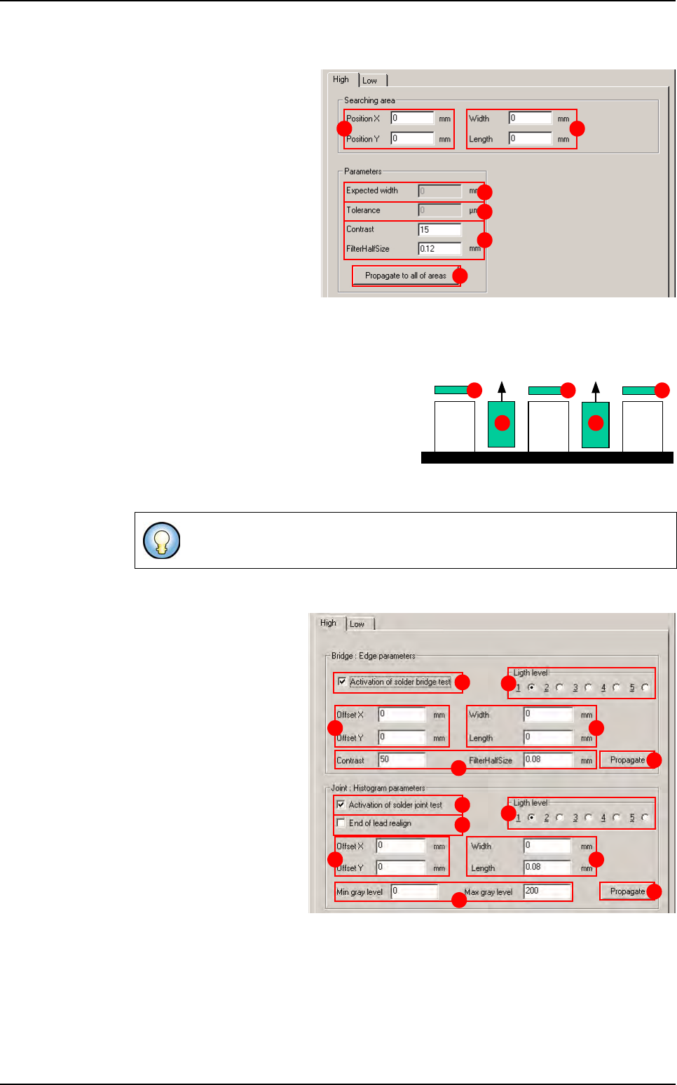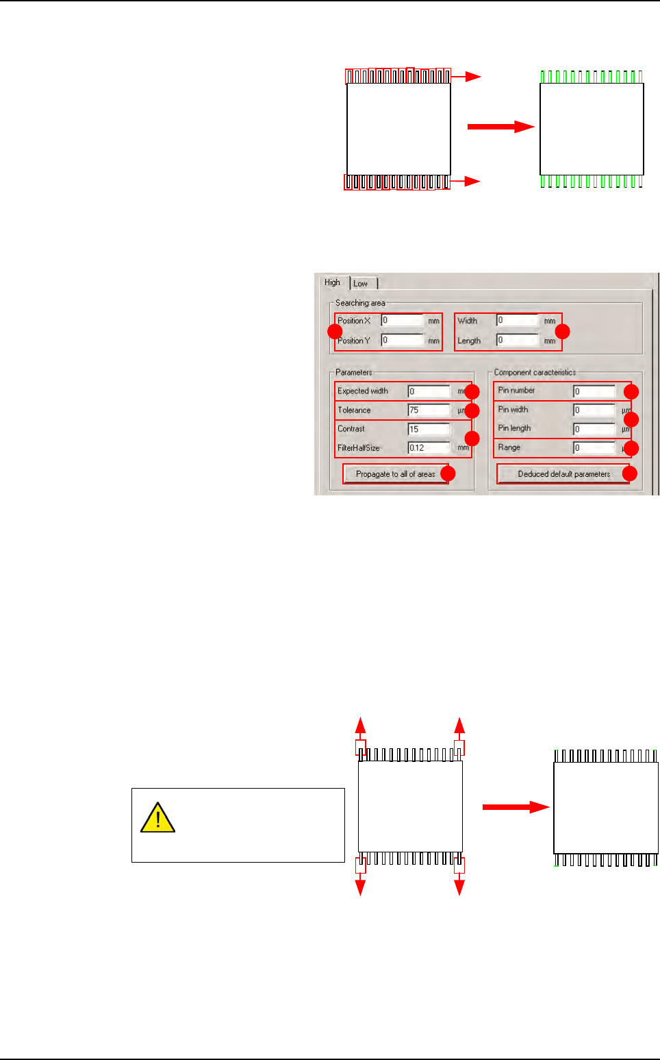 Tools library Vision 2007 4.10 User Manua l Rev 01 7 - 33 Searching area Position X & Y ( A ): offset for all edges. Width & length ( B ): edges size. Parameters Expected width ( C ): lead width. Tolerance ( D ) …