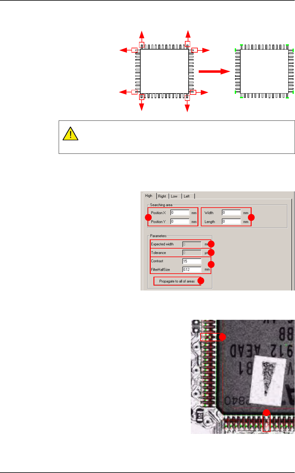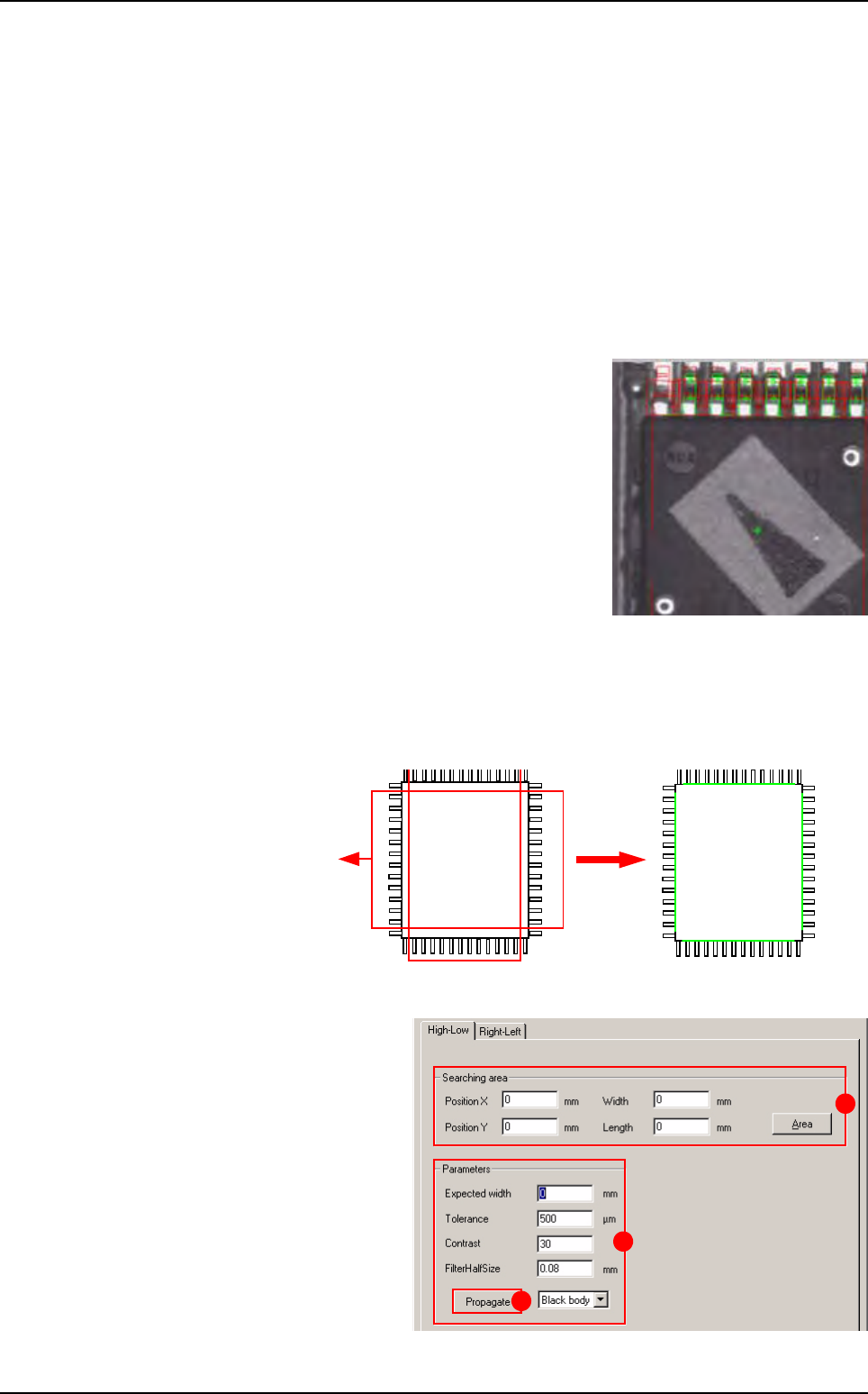 Tools library Vision 2007 4.10 User Manua l Rev 01 7 - 35 7.7.6.2 Accurate detection of the component position This position is cal- culated from the edges that are posi- tioned at either end of the component lead. The n…