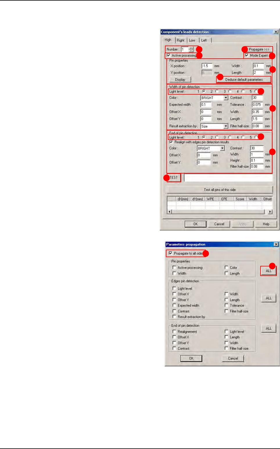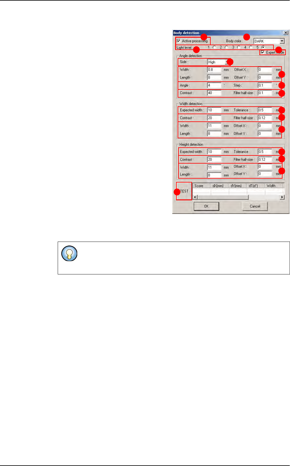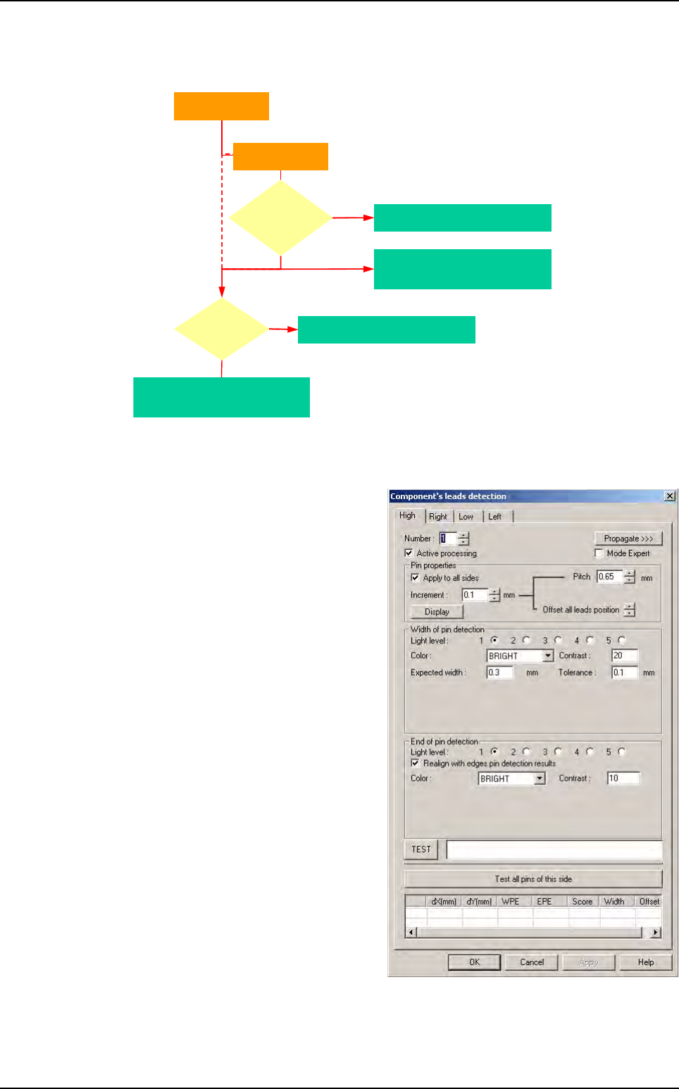 Tools library Vision 2007 4.10 User Manua l Rev 01 7 - 39 7.8.4 Components leads detection 7.8.4.1 Algorithm 7.8.4.2 Parameters Without Expert Mode The option Expert mode ( J ) is not ticked. Select the tab to edit the w…