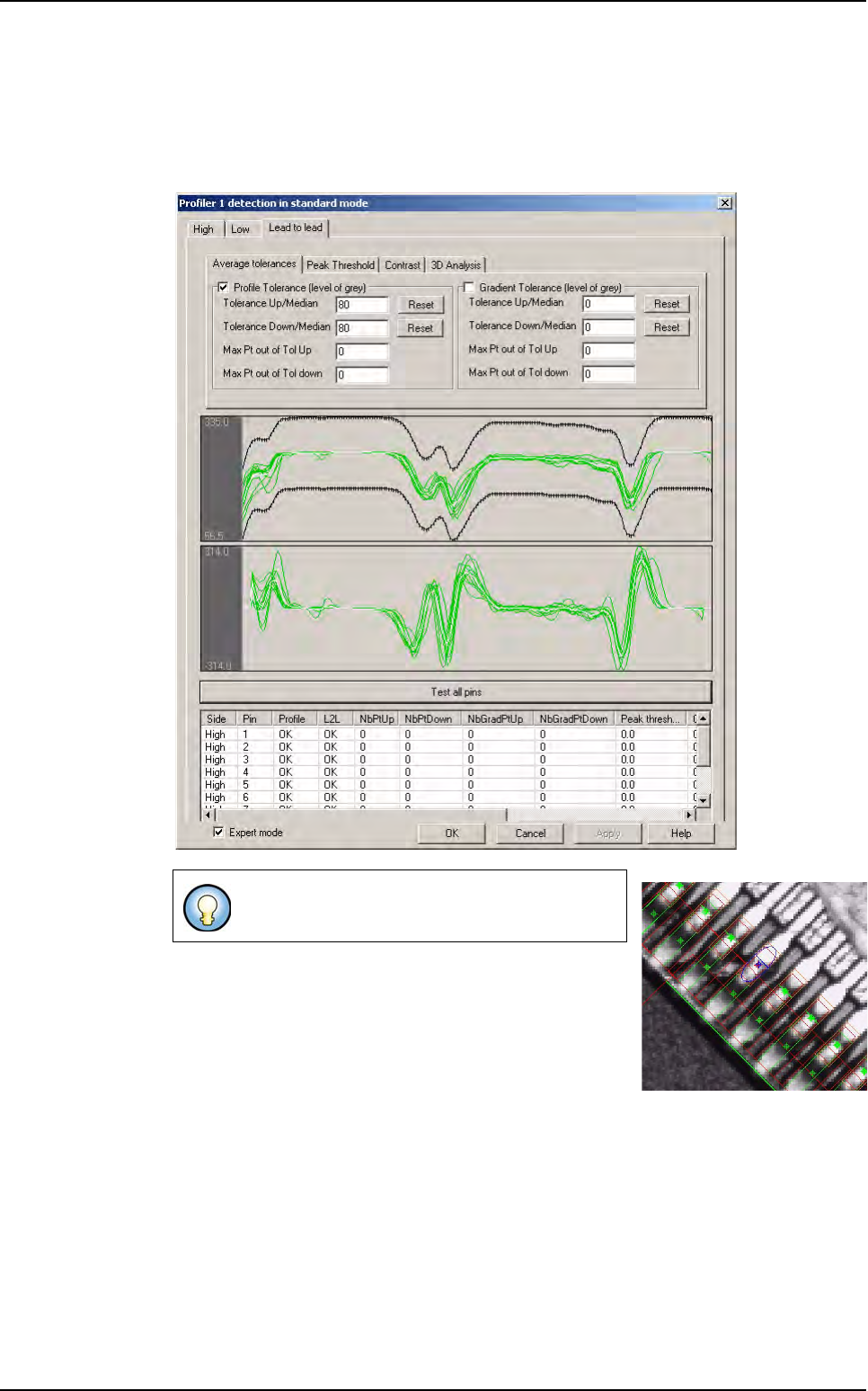 Profiler™ tool test all pins of each side. Tolerances are adapted on the