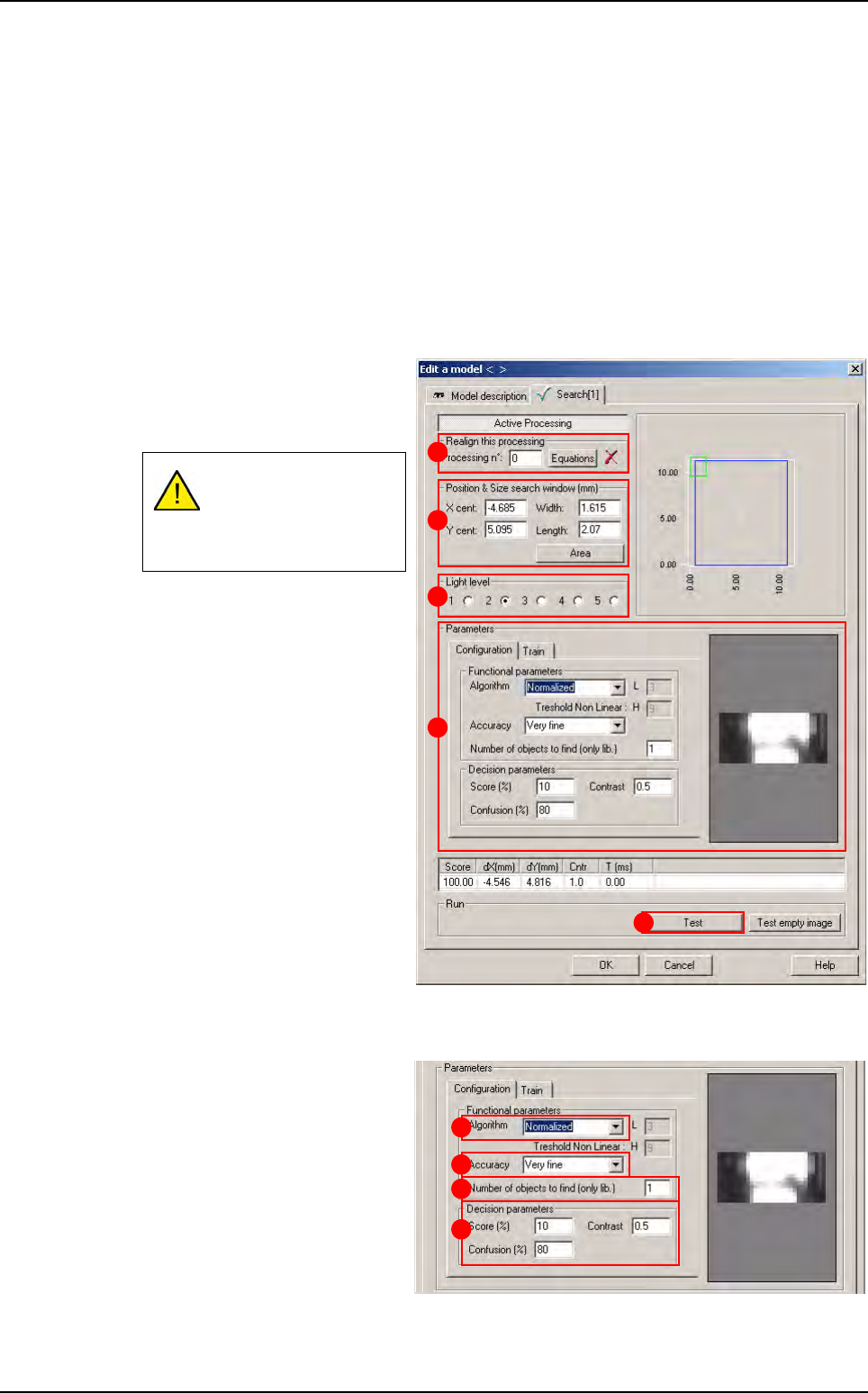 Tools library 7 - 90 Vision 2007 4.10 User Manual Re v 01 The Search tool also uses 3 accura cy levels: coarse, fine, very fine. 7.15.1.4 Algorithms and performance Choosing an a lgorithm an d an accuracy leve l can grea…