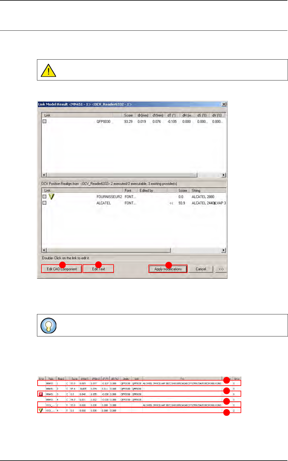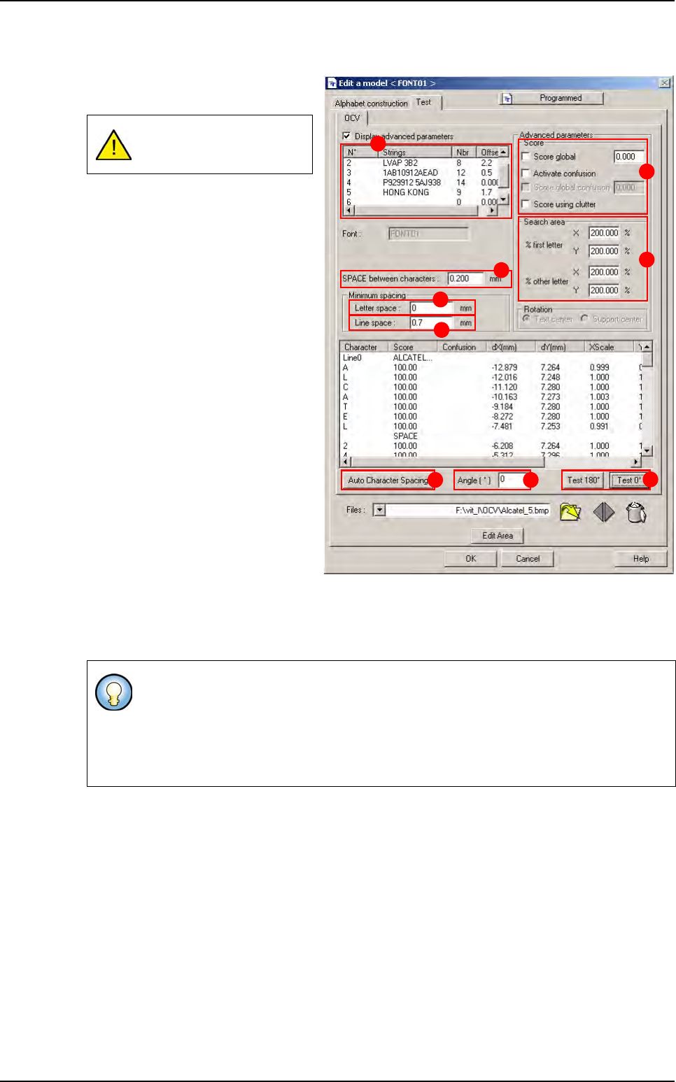 Optical Character Verification Vision 2007 4.10 User Manua l Rev 01 8 - 13 8.3 Text in debug mode 8.3.1 Ctrl + E Use Ctrl + E shortcut to display the window below If the text is joined to the component: The Edit CAO Comp…