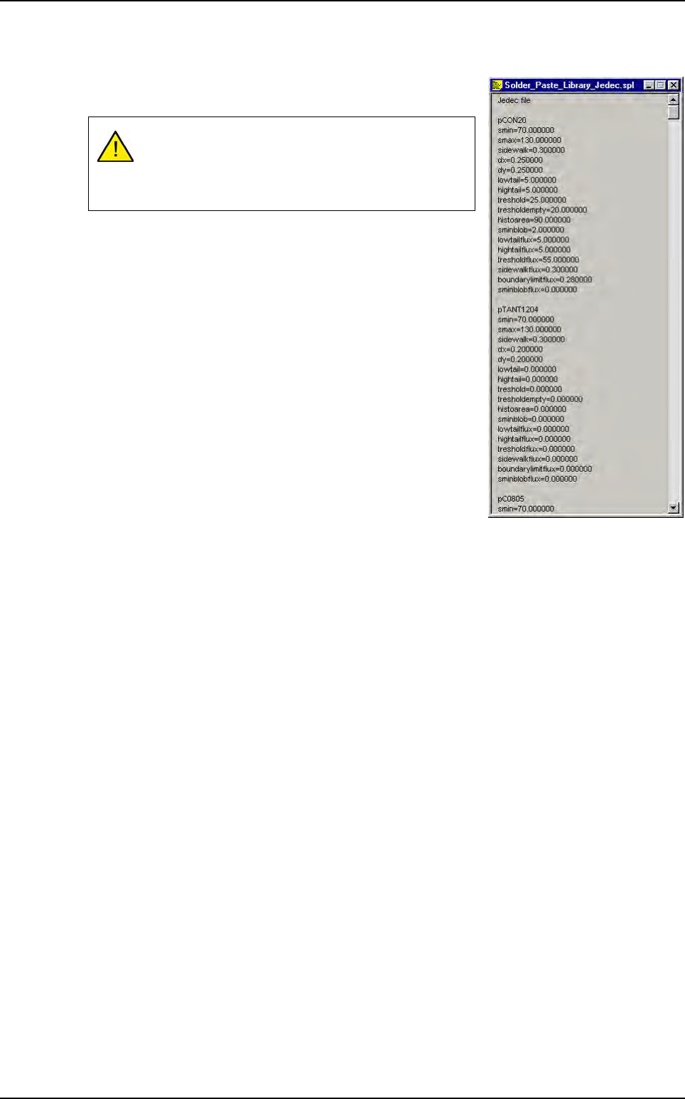 2D solder paste inspection Vision 2007 4.10 User Manua l Rev 01 9 - 11 9.5.2 .spl file based on JEDEC The first line must be jedec file otherwise Vision 2007 does not recognize that it is a .spl file based on JEDEC famil…