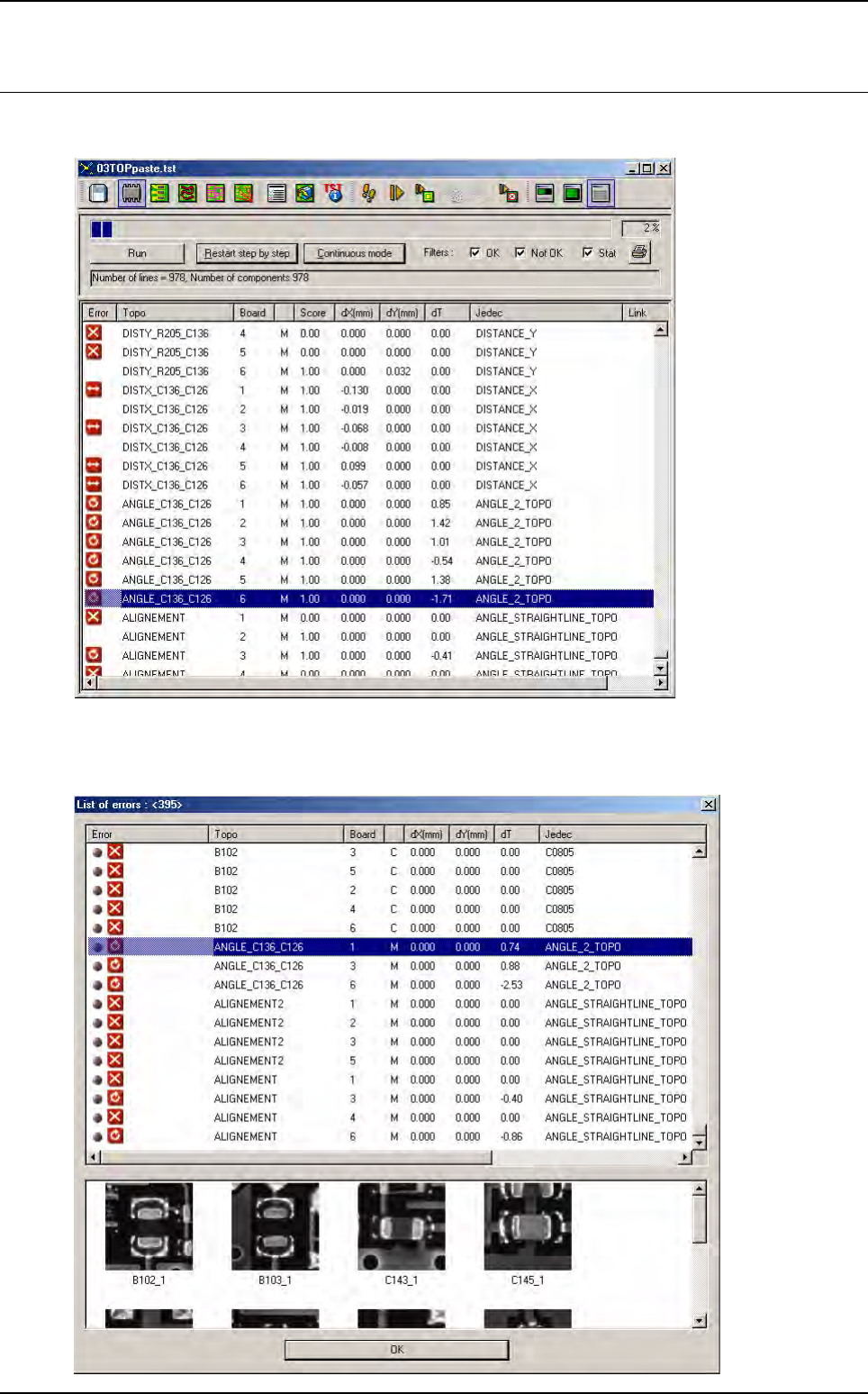 database and also transferred to the repair station, but no images are taken for these error types.