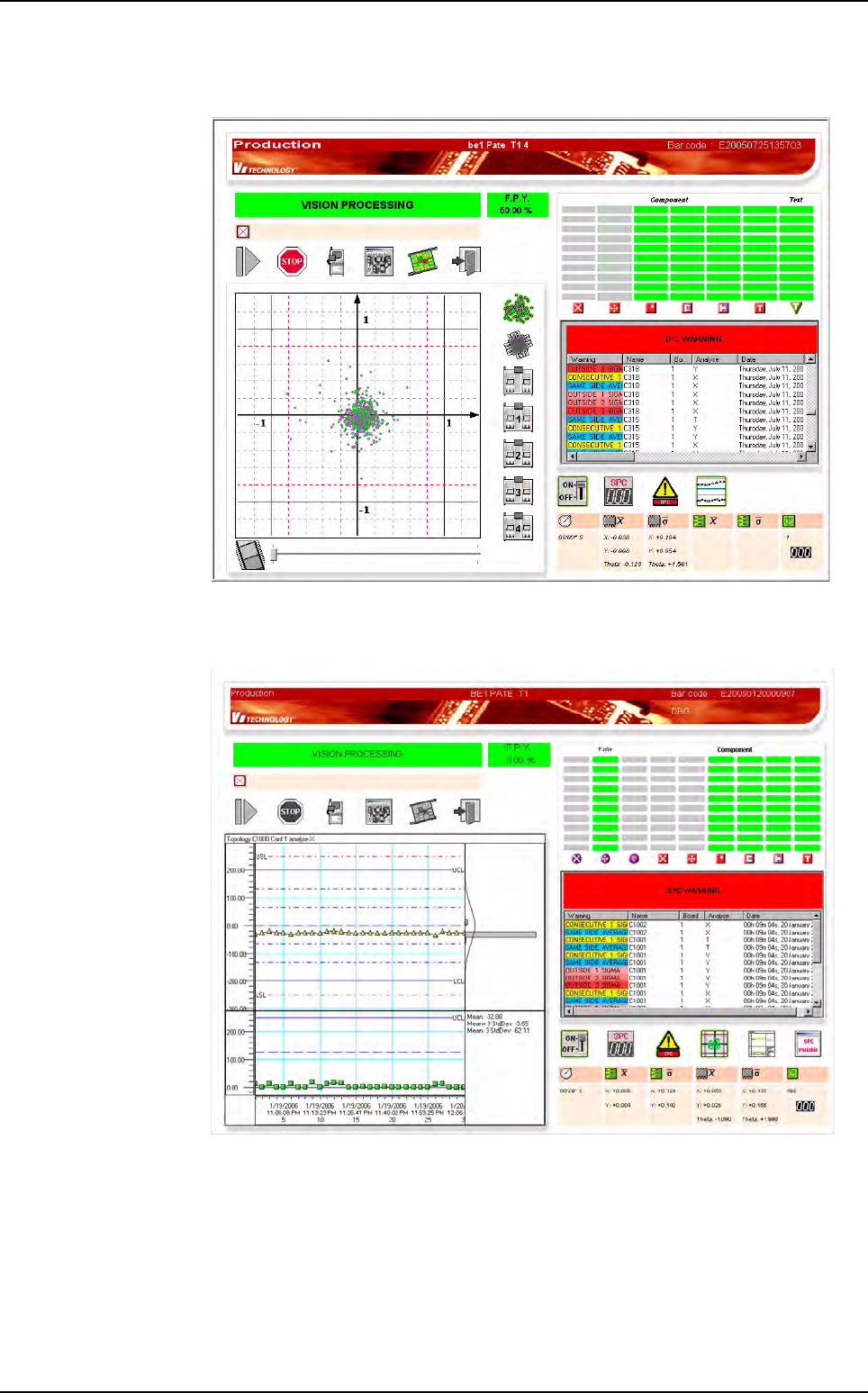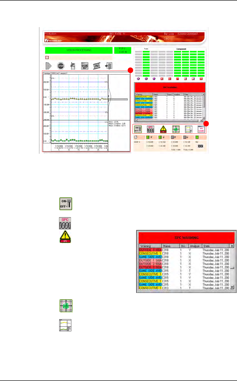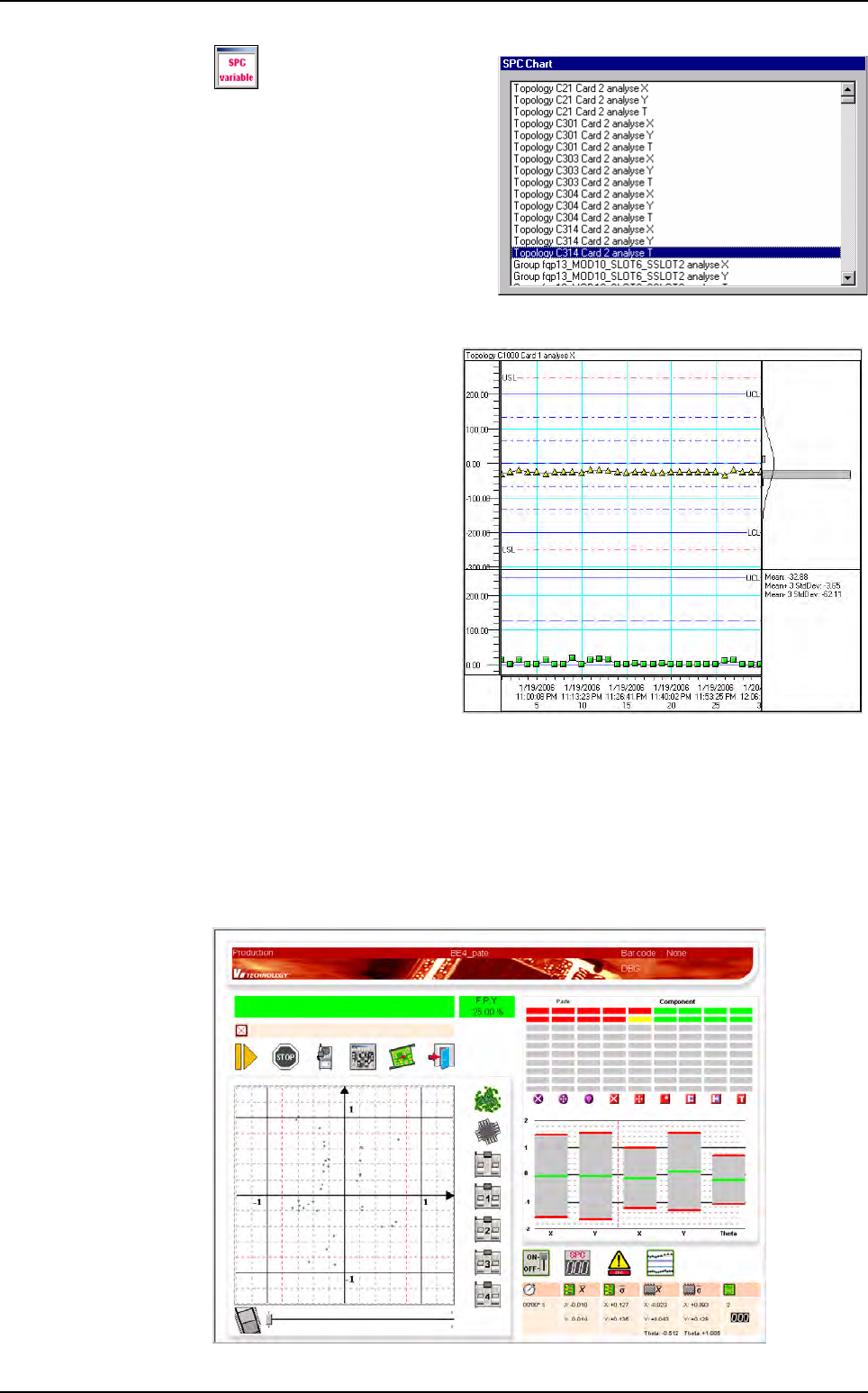 Production 11 - 14 Vision 2007 4.10 User Manual Re v 01 Display the list of the ana- l y z e d v a r i a b l e s . T h e c h a r t s c o r - respond to the selected variable. 11.3.2.2 SPC charts display area 4 charts whi…