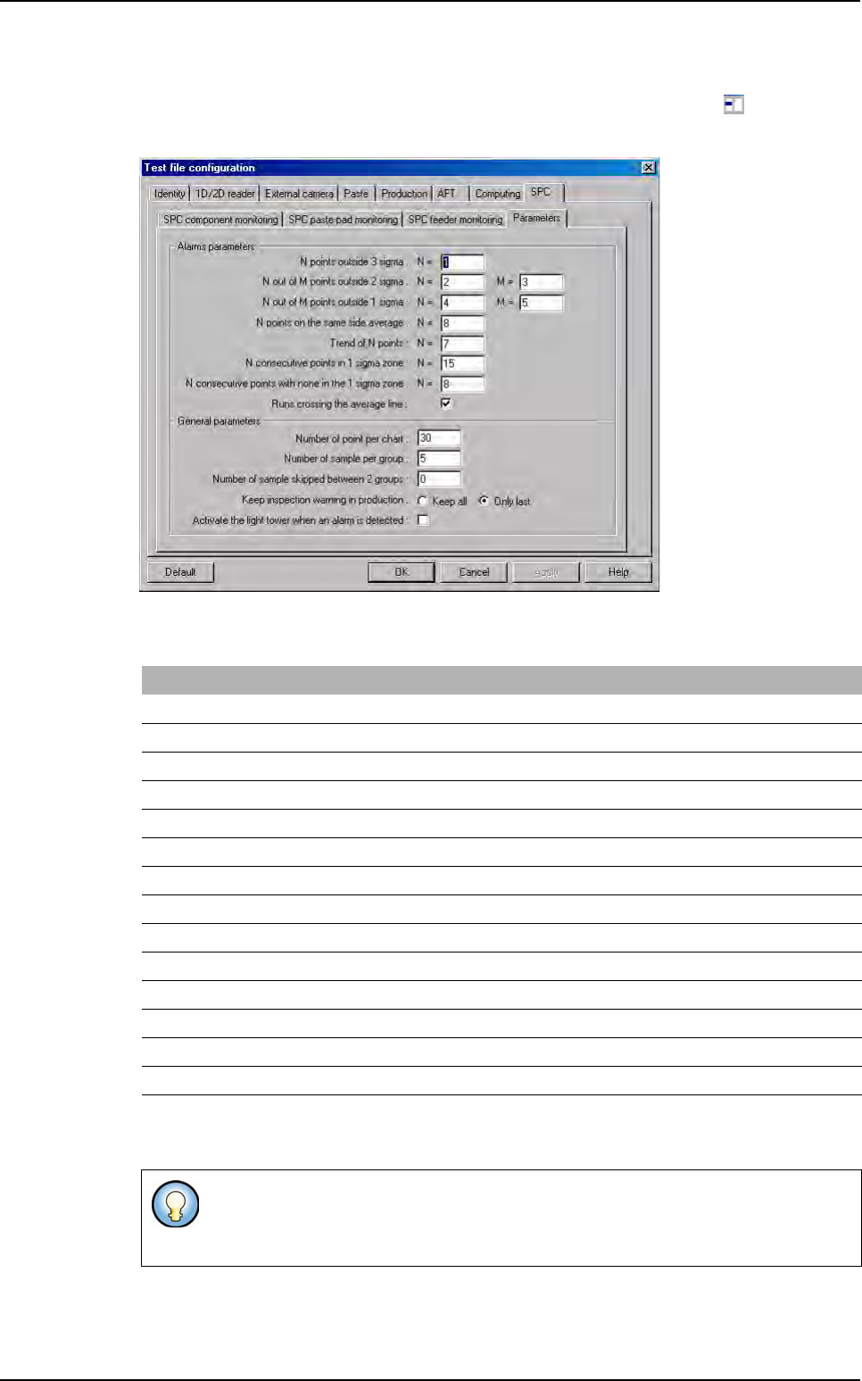 bar. In the Test file configuration window select SPC tab and Parameters sub tab.