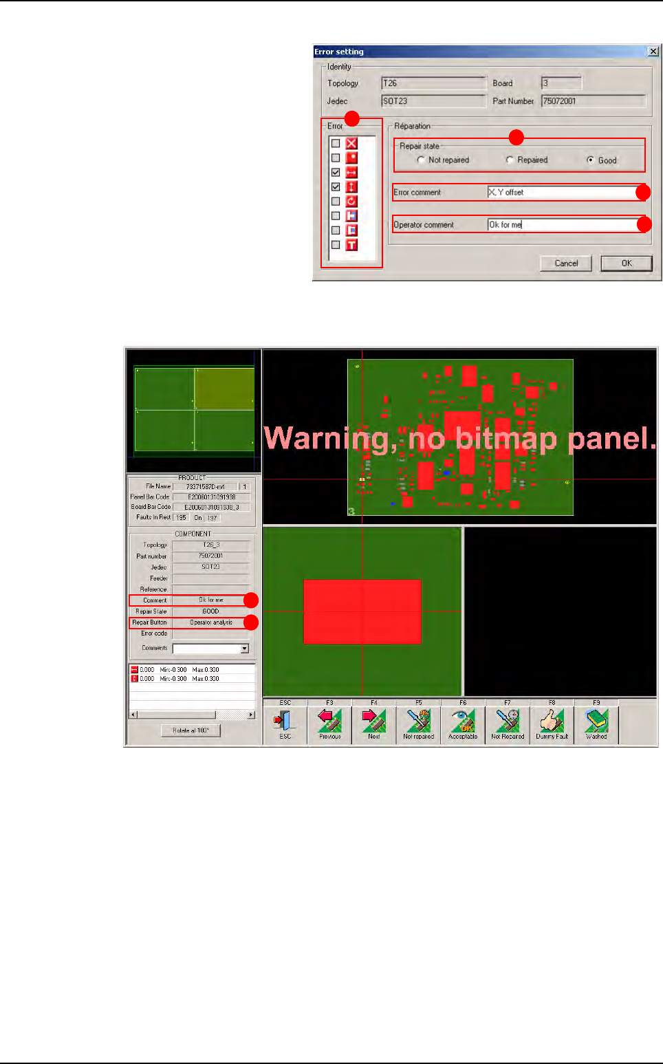 The Repair State information corresponds to the selection in the Error setting window.