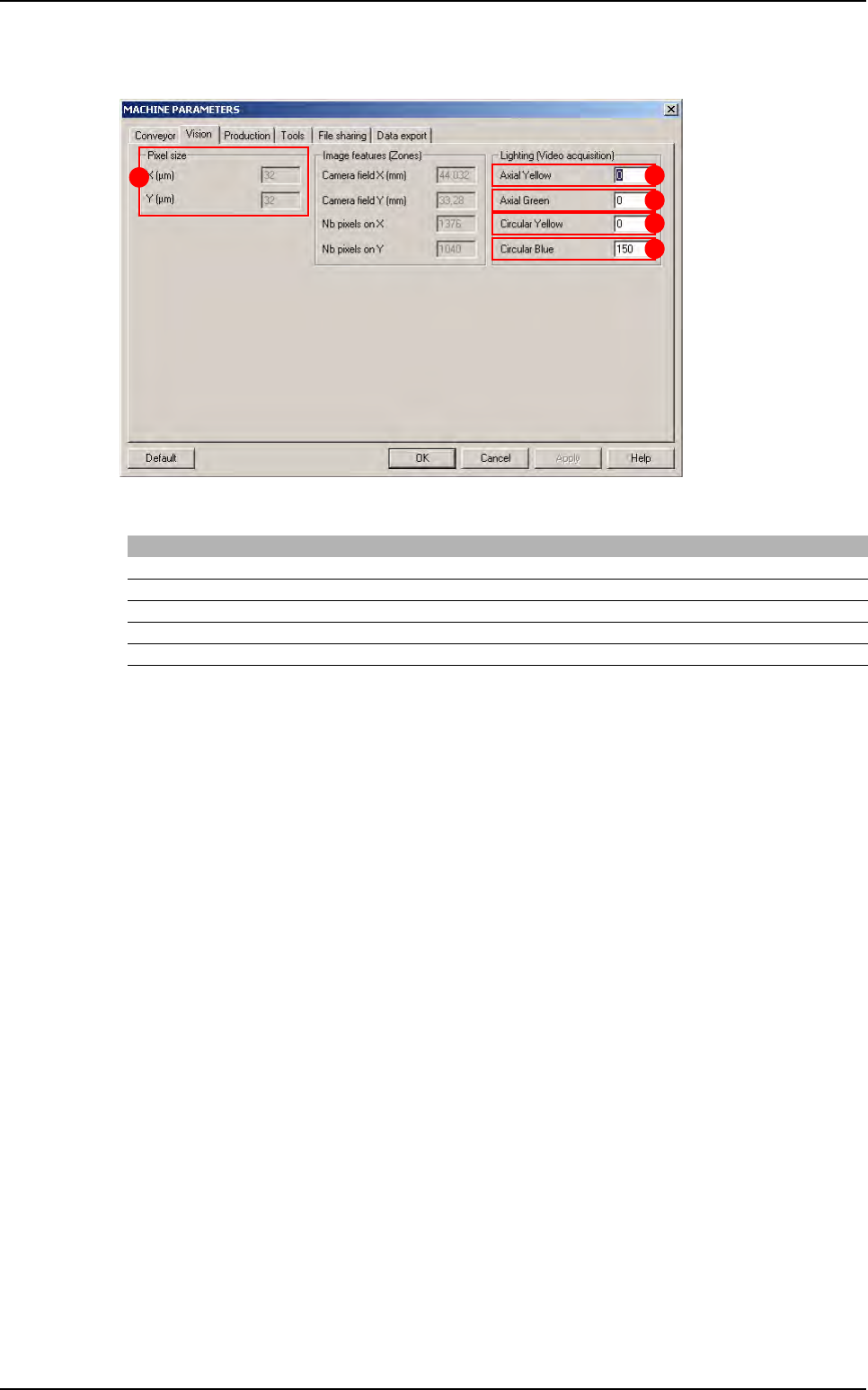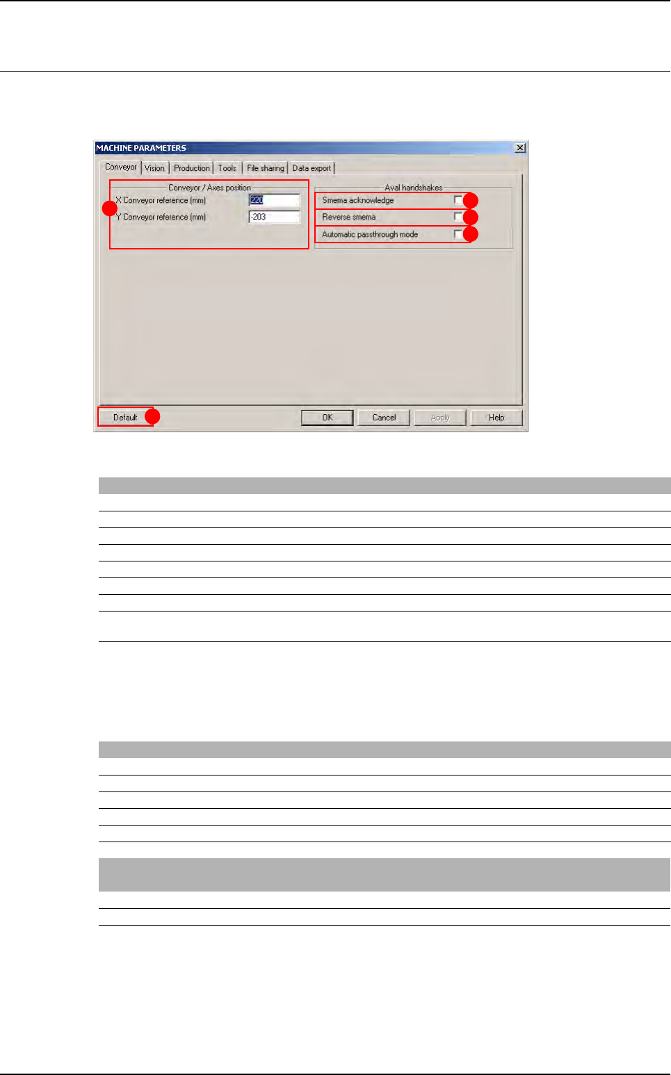 .ini files A - 4 Vision 20 07 4.10 User Manual Rev 01 A.3 Maintenance default values A.3.1 Conveyor tab INI section: [Conveyor] C This key defines the machine cells filter duration . D Unused. H Machine dependant value. …