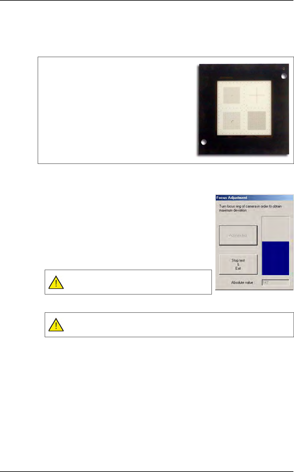 Maintenance mode Vision 2007 4.10 User Manua l Rev 01 2 - 5 2.1.2 Focus The Focus function allows optimu m adjustment of the camera focus and ensures homogeneity between machines. Optimum focu s is obtained when the abso…