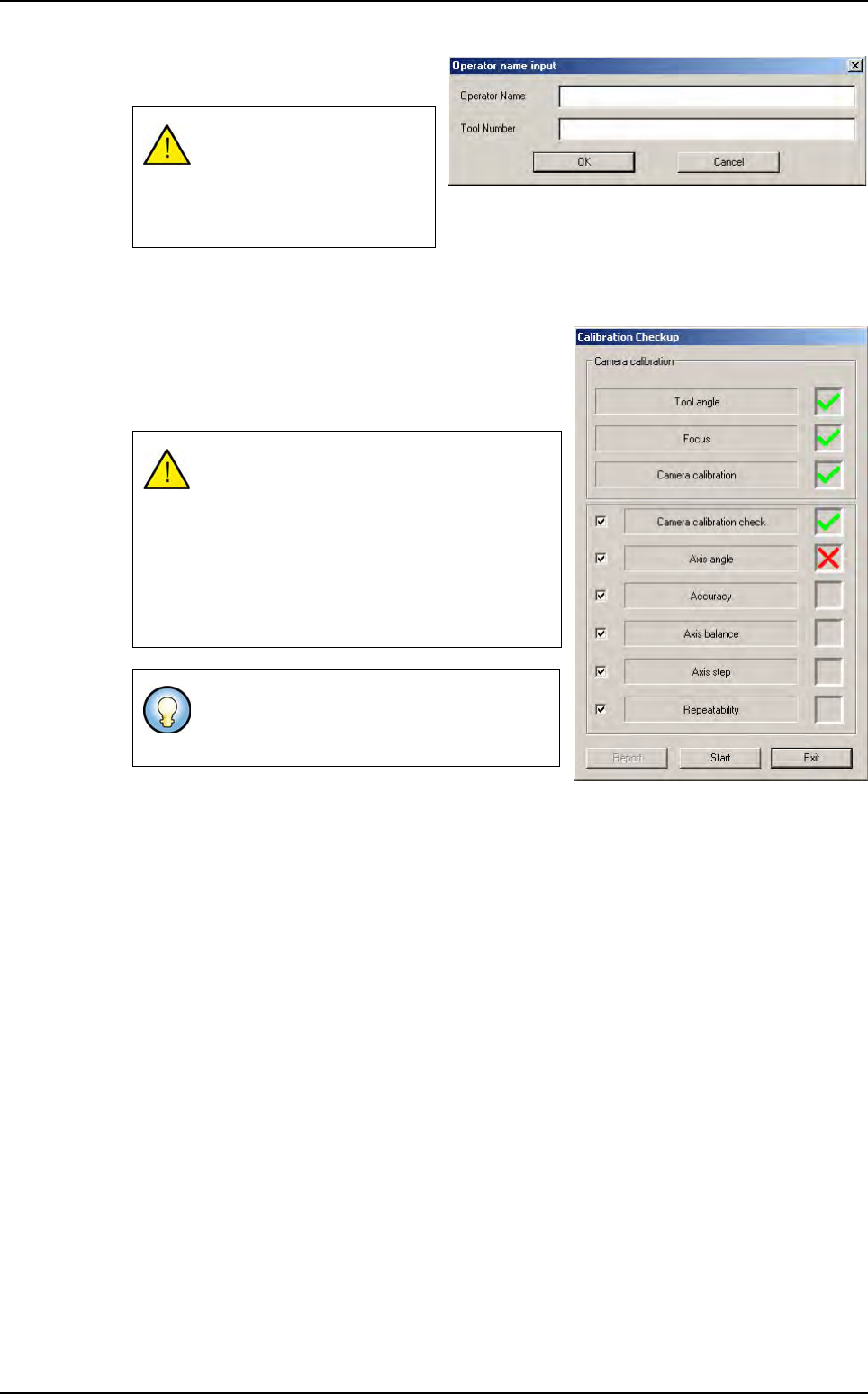 Maintenance mode 2 - 8 Vision 2007 4.10 User Manual Re v 01 Axis angle ( A ): check the angle and the linear ity of the XY axes. Axis step ( B ): check the pitch of the XY axes. Balance of axis ( C ): check that the ca m…