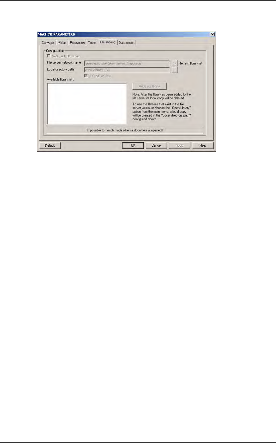 If AOI systems are linked with a file server which contain library .bm shared files, tick Work with