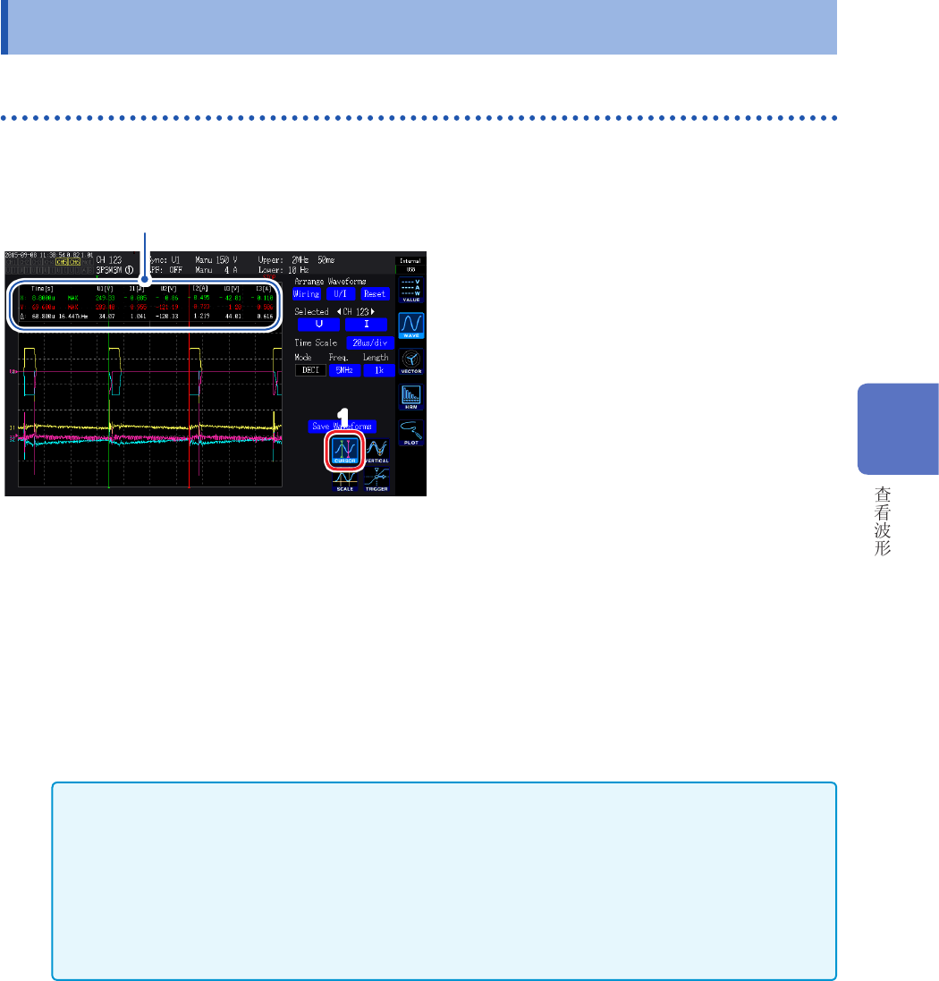 1 点存在MAX 值、MIN 值 2 个数据 ( 第 95 页、第 96 页 )。因此,光标测量时,