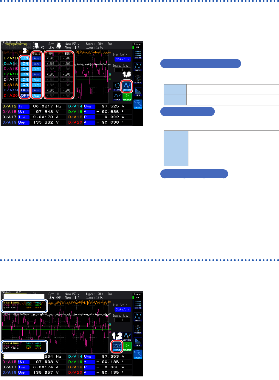 按 D/A 输出项目触摸 ON/OFF进行切换