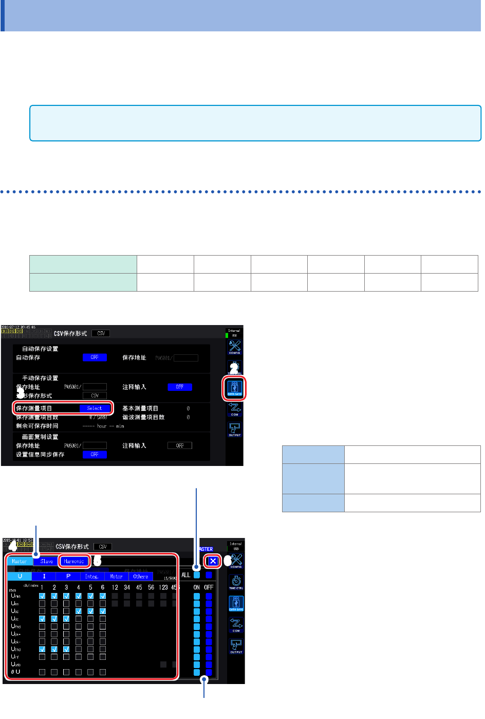 可从基本测量项目、谐波测量项目的所有测量值中任意选择。