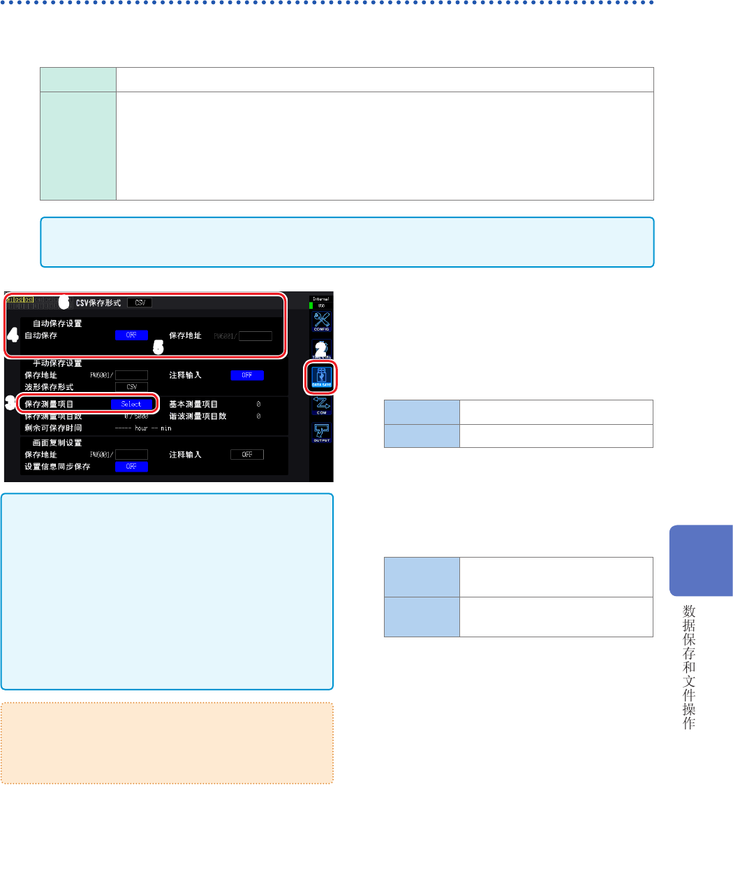 在手动保存、波形保存、画面硬拷贝期间开始自动保存时,自动保存的多次数据可能会丢失。