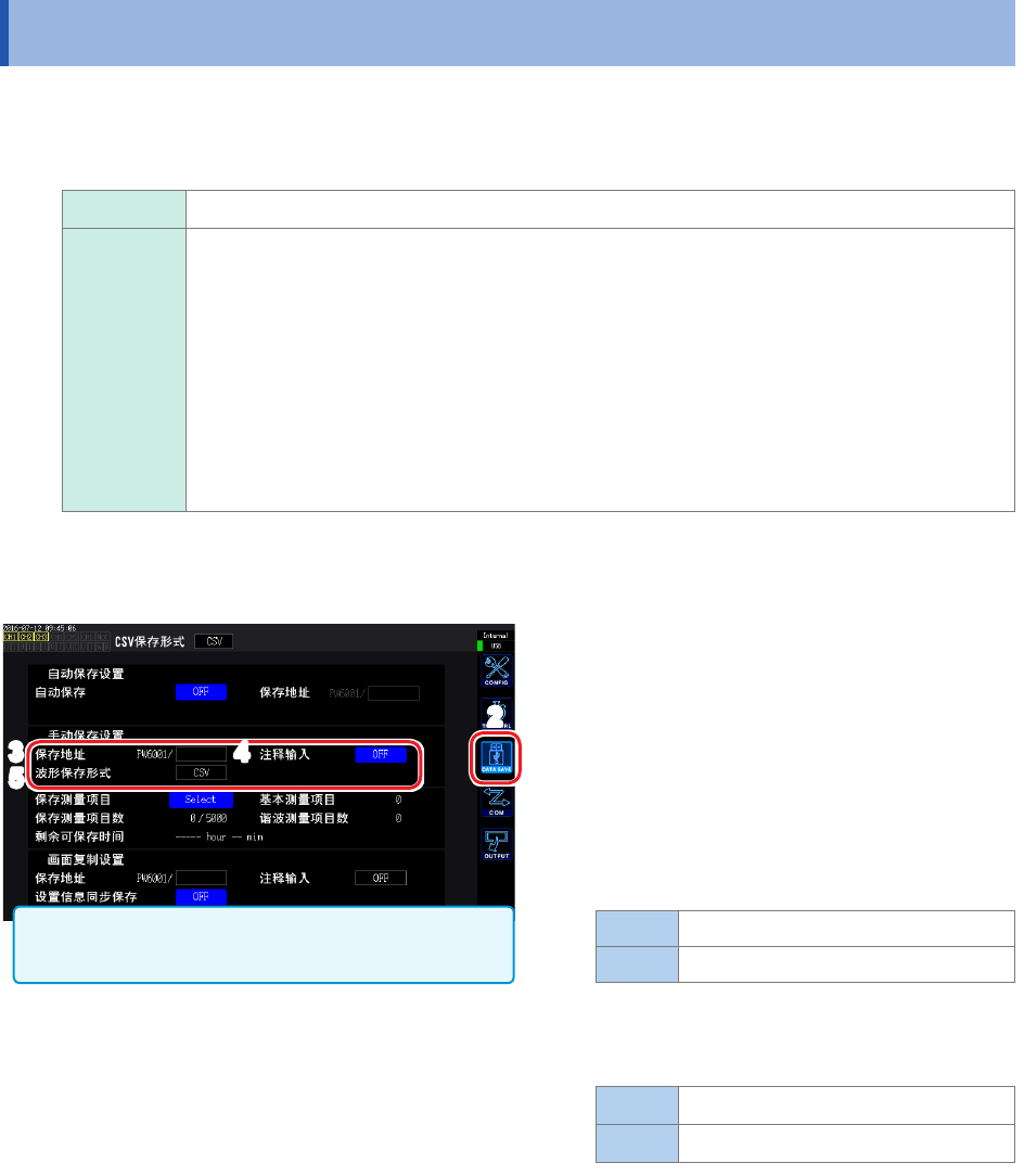 入的设置与测量数据的手动保存通用。