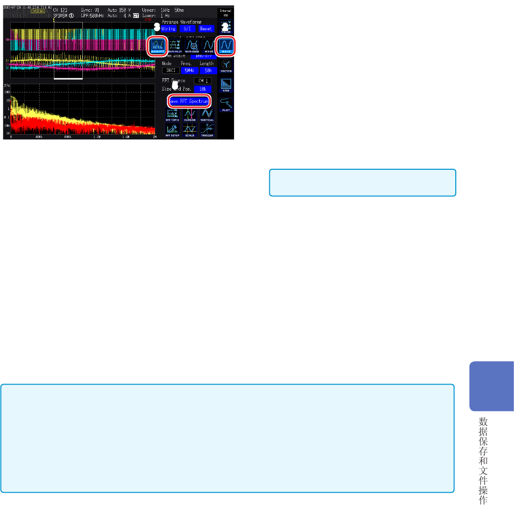按照按下 Save FFT Spectrum 的时序保存 WAVE+FFT 画面中显示的 FFT数据。保存处、注释输