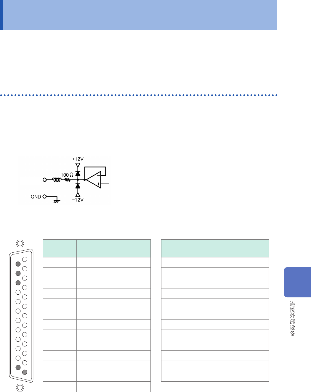 168 使用 D/A 输出 (仅限于带马达 &D/A 型号) (模拟输出与波形输出) D/A 输出端子的连接方法 焊接型连接器 电线 背面 连接器盖 电缆固定部分 屏蔽电缆 螺钉 连接外部控制端子与输出端子时,请使用主机附 带的连接器 ( DB-25P-NR 、 DB19678-2R 日本 航空电子工业株式会社) 或同等产品。 • 请牢固地焊接电线。 • 请务必用附带的螺钉 (M2.6 × 6) 固定连接器与连接器盖,以防止连接…