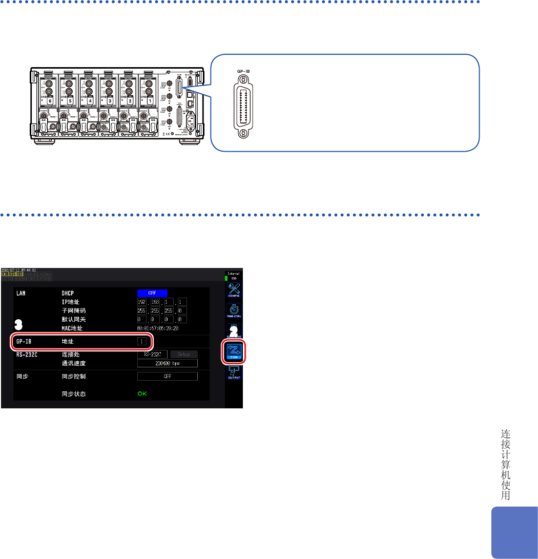 本仪器标配有GP-IB 接口。可利用GP-IB电缆连接本仪器与计算机,进行远程操作,或将测量数据