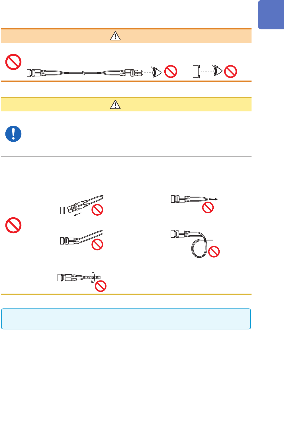直视电缆端头或利用放大镜等进行观察。否则可能会对眼睛造成伤害,导致视力障碍。