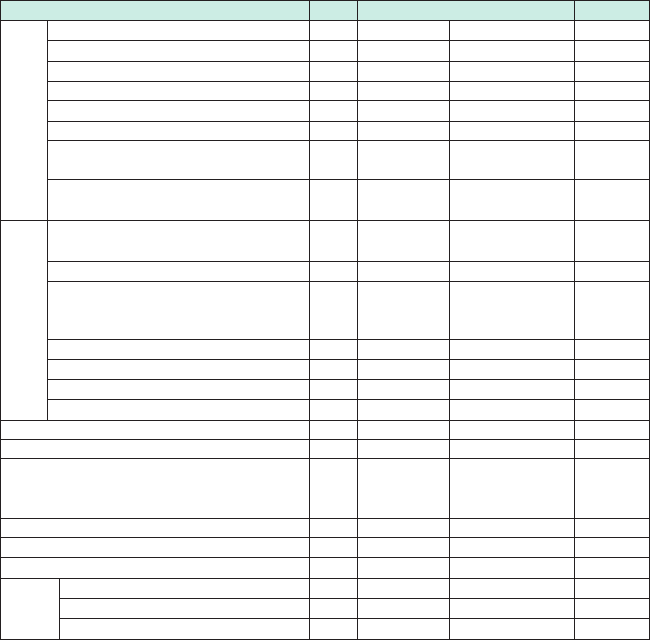 225 测量项目详细规格 (2) 累 计 测量 项目 测量项目 标记 模式 1 1P2W × 6 模式 2 1P3W/ 3P3W2M + 1P2W × 4 模式 3 1P3W/ 3P3W2M × 2 + 1P2W × 2 模式 4 1P3W/ 3P3W2M × 3 模式 5 3P3W3M/ 3V3A/ 3P4W + 1P2W × 3 模式 6 3P3W3M/ 3V3A/ 3P4W + 1P3W/ 3P3W2M + 1P2W 模式 7 3…