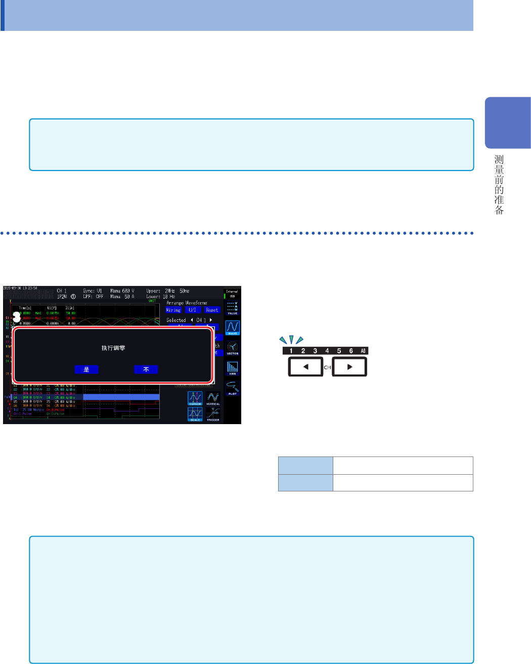 CH1 ~ CH6点亮时,执行电压与电流的调零。