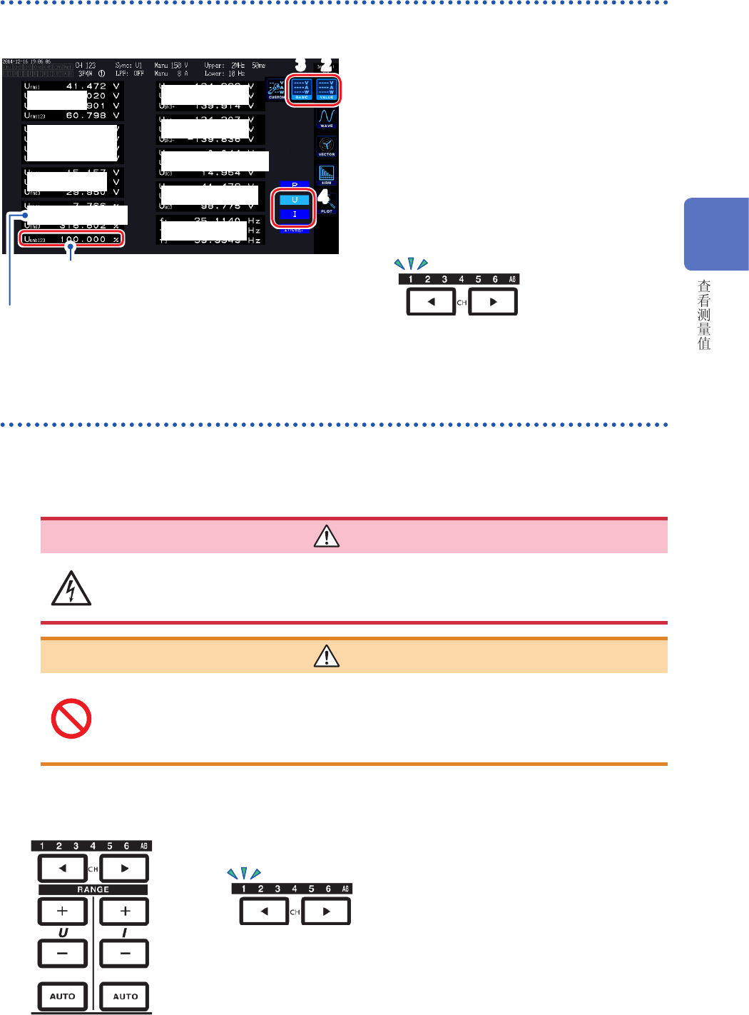 利用通道操作键变更要显示的通道,或变更电压、电流的量程。