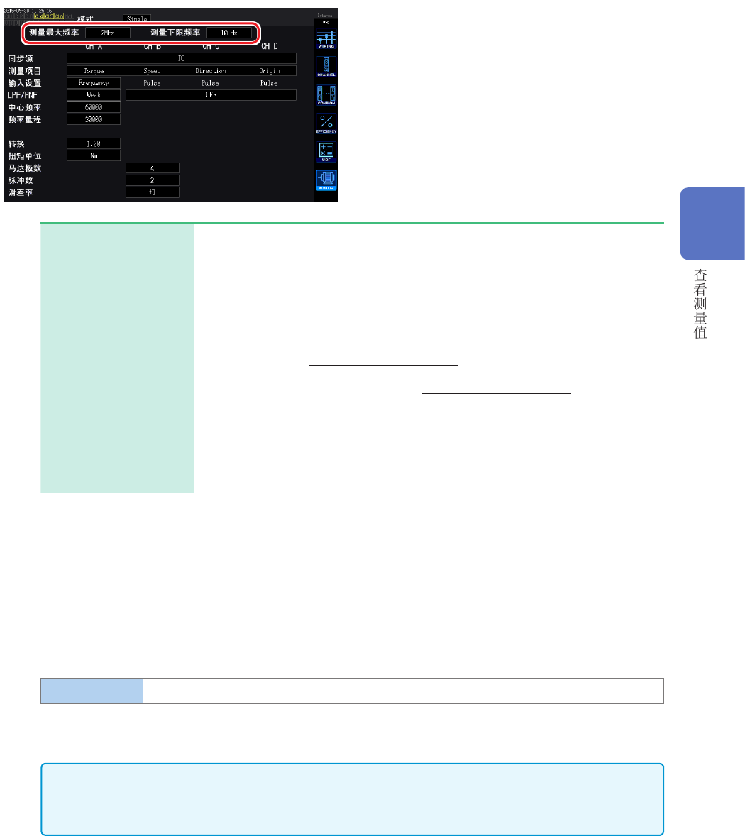 Ext1、Ext2、Zph.、CH C、CH D时,也用作要测量的下限频率。