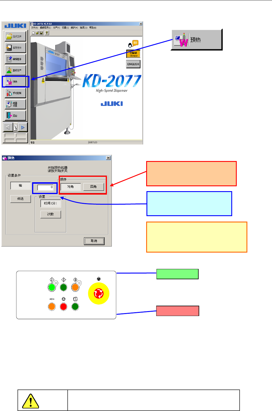※ 在预热中如果按下[停止开关]或画面的「取消」按钮,则暂停。