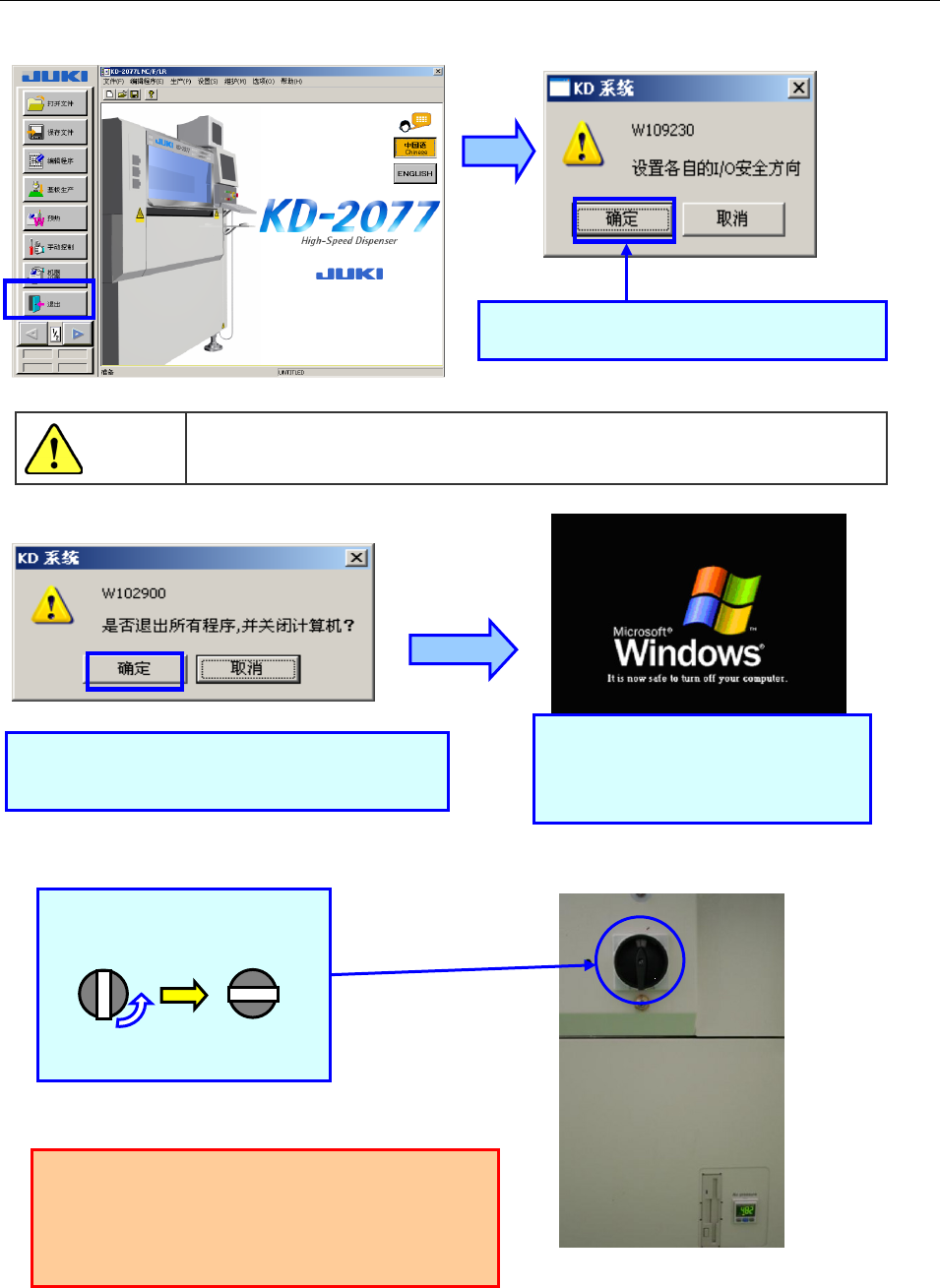 开始关闭处理,按照主体软件和 Windows XP