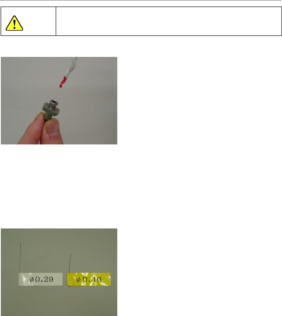 ② 将丙酮等(溶剂)滴入针内,将针尖内的胶粘剂抽出。