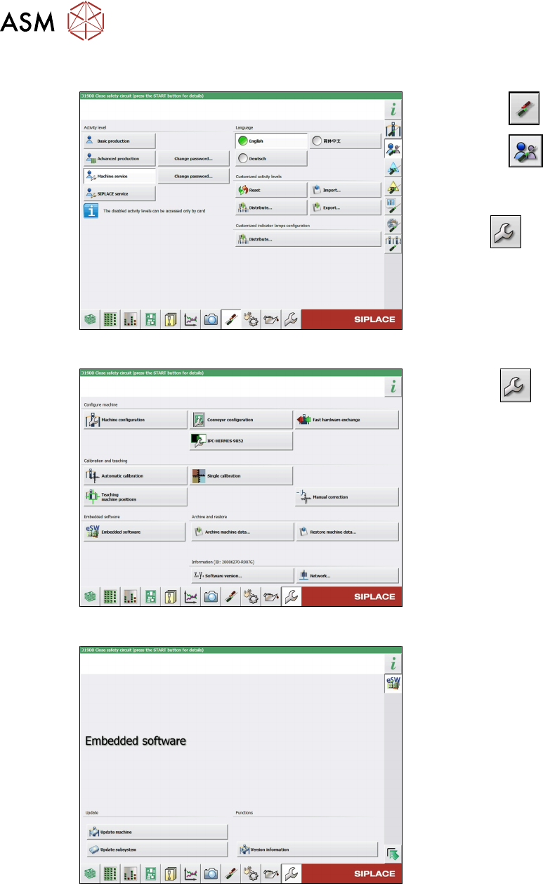 4 Dismantling a Gantry 4.2 Performing Calibration 120 Assembly Instructions / Montageanleitung SIPLACE SX1/SX2 V3 Gantry Modularity Portalmodularität 05/2020 4.2.1 eSW Download (SW 70x) Fig.62: Select operator level ► S…