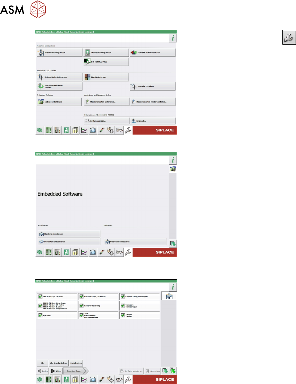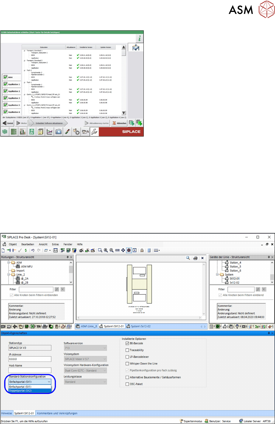3 Montage des Portals 3.6 Abschließende Arbeiten Assembly Instructions / Montageanleitung SIPLACE SX1/SX2 V3 Gantry Modularity Portalmodularität 05/2020 55 Abb.55: Menü Maschine aktualisieren ● Links befinden sich die A…