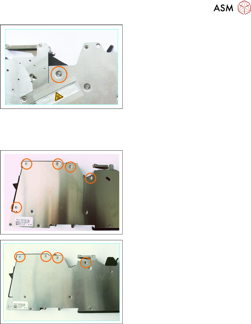 6 Reparatur der X-Zuführmodule 6.5 Folienentsorgung 64 Serviceanleitung SIPLACE X-Feeder 4 - 88 mm 11/2017 ► Legen Sie das Zuführmodul vorsichtig auf die rechte Seite. ► Entfernen Sie die linke Seitenabdeckung (siehe 6.3…